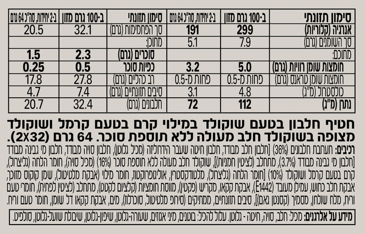 | כשרות | כשר חלבי אבקת חלב נוכרי באישור הרבנות הראשית לישראל |