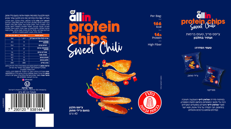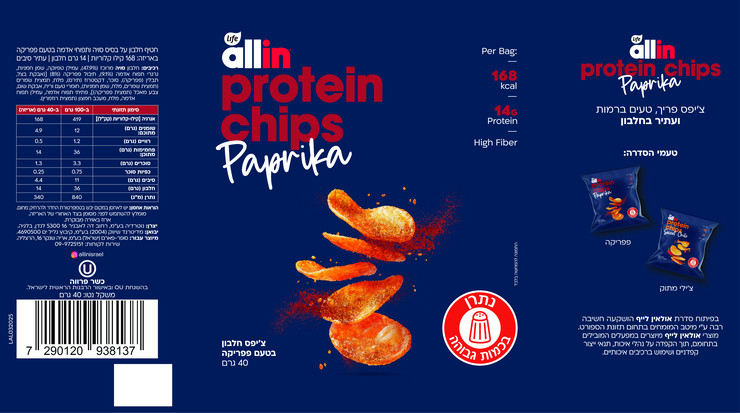 אם אתם מחפשים את השילוב המדויק בין טעם נהדר לערכים תזונתיים גבוהים – מצאתם. צ׳יפס חלבון אול אין מגיע בטעמי פפריקה קלאסי וצ׳ילי מתוק ומעודן שמצליח לשמור על הפריכות הממכרת של הצ’יפס האהוב ולשלב בתוכו ערך מוסף אמיתי לגוף שלכם.
